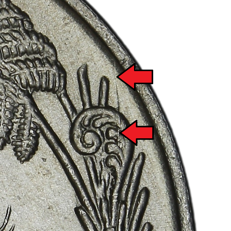 1967 – 20c – Die Crack Koru to rim – DC from kiwi Beak to rim – 3