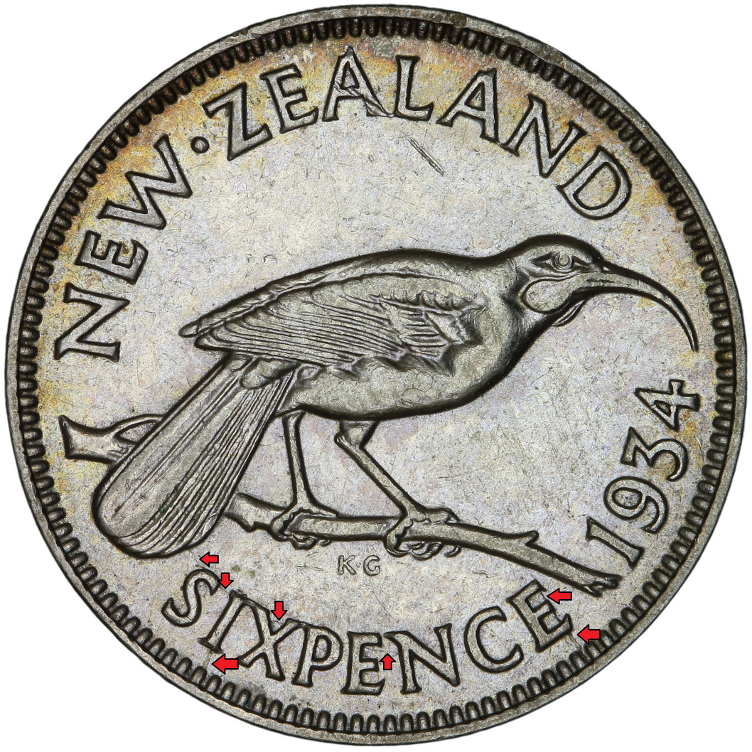 1934 – 6d – Die Crack S and Last E of Sixpence and from S to tail feathers- 1 – Copy_resize ← Previous Next →