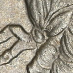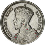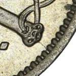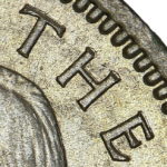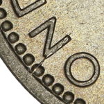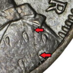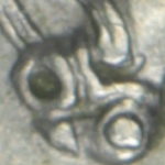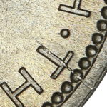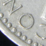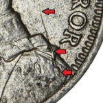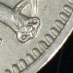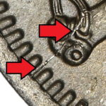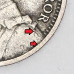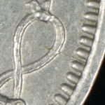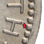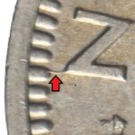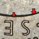 As these dies started to wear small cracks to the letters appeared. Note that this is a later example of the dies that faulted not all coins will show all of these cracks but having the die cracks helps confirm this is the correct error. From the coins I have the first cracks appeared on this die after the broken nose and the reverse faulted first then the E on the obverse