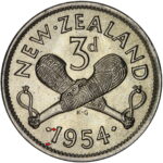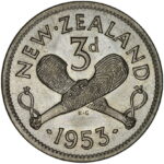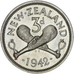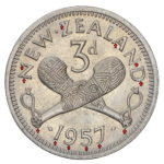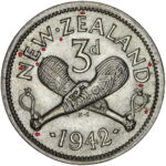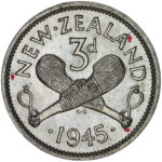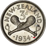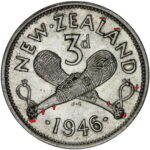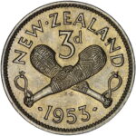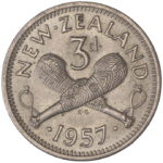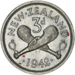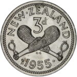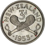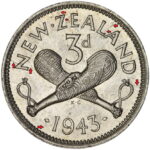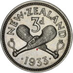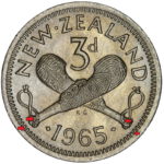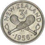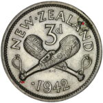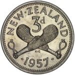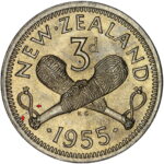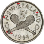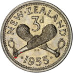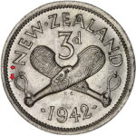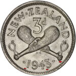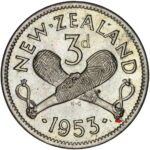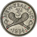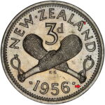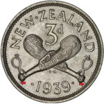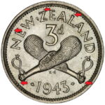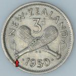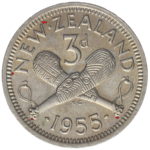 New Zealand threepence have a few well known and catalogued varieties in the 1955 two dots on shoulder, 1956 Strapless and the 1957 87 dots The New Zealand Threepence is also well know for many Die cracking errors due to the number of these they will be listed one day but with over 300 different die cracking faults from 1947 to 1965 this might take a while