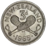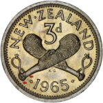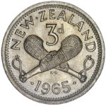 Die Clash more obvious on the Obverse showing the outline of the Patu and 96. This fault often starts with a obvious line under the Queens Ear that is present on a number of years but this is only the second 1965 coin I have found to show this extent of a die clash.