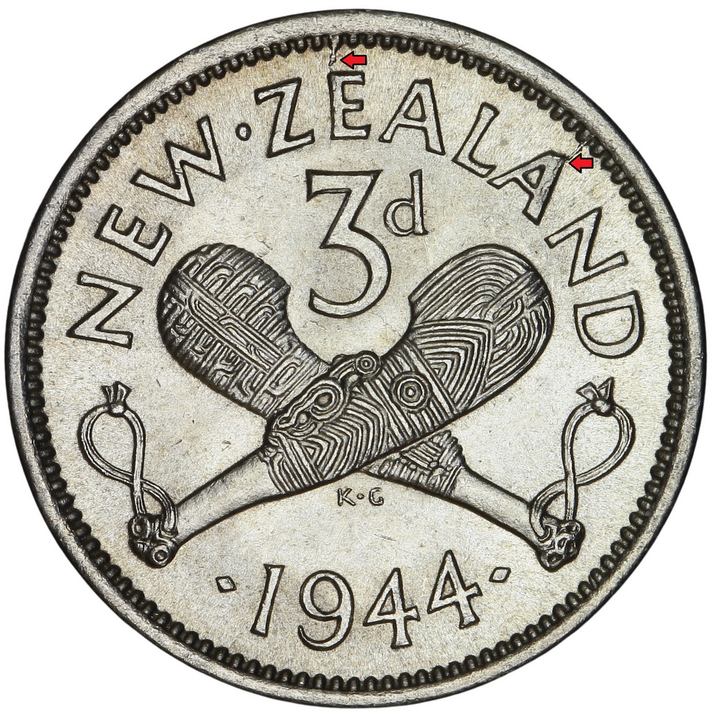 1944 – 3d – E and 2nd A of Zealand – O of Emperor + Die Crack to neck – 1_resize