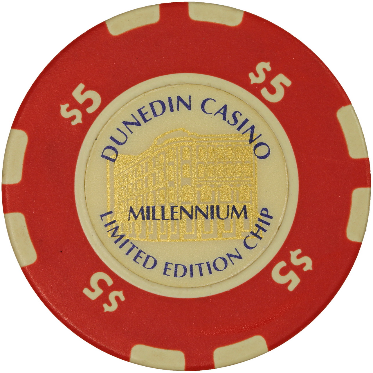2000 – $5 – Dunedin Casino Millennium Chip Limited Edition – Heavy Detail on Building – 2_resize ← Previous Next →